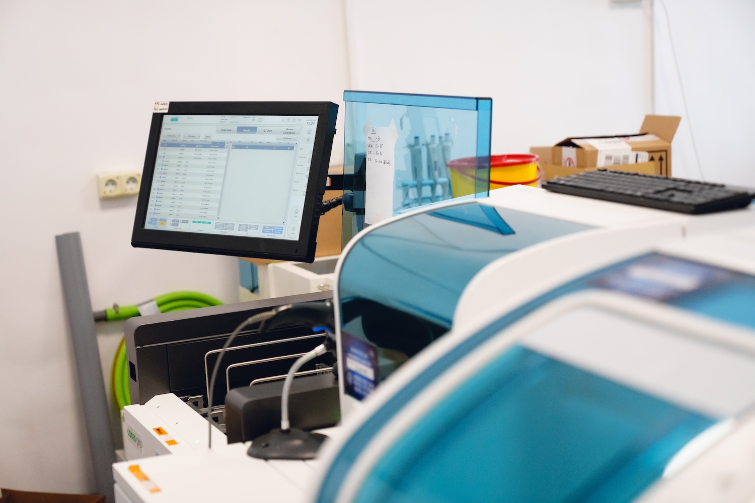 Dotările laboratorului includ analizoare automate performante, sisteme informatice integrate pentru gestionarea probelor și echipamente de siguranță biologică, asigurând prelucrarea rapidă și corectă a fiecărei probe.